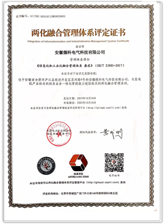 “两化融合”是工信部推行的国家战略,是信息化和工业化在技术、产品、服务、管理等各个层面的深度结合。作为提升企业核心竞争力的战略性工具,“两化融合”对推动公司的创新发展具有深远的意义。2019年,kaiyuan官网根据国家《信息化和工业化融合管理体系要求》(GB/T 23001-2017)标准,经过自主申报、体系运行、内部审核、管理评审、专家评审和复核公示等环节,于近日正式通过评定,取得了两化融合管理体系评定证书。